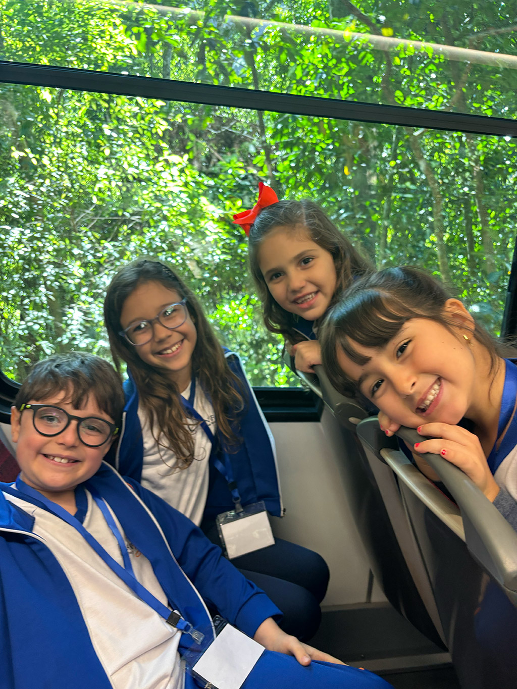 E, quando falamos de ensino de língua estrangeira, esses momentos tornam-se ainda mais significativos: a criança passa a usar o inglês em situações concretas, seja para nomear o que vê, cantar durante o percurso ou interagir em pequenos diálogos preparados para a saída.
