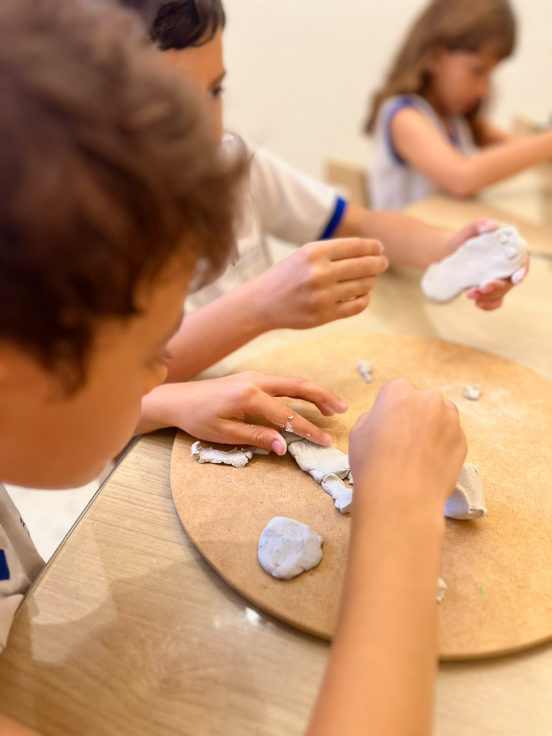Como nos provoca Charles Schwall, é nesse espaço que o pensamento infantil se torna visível. E isso não acontece por acaso. Acontece porque há materiais que desafiam, que instigam, que não entregam respostas prontas. Argila, tintas, papéis, elementos naturais — aqui, eles não são recursos. São interlocutores.